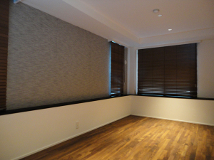 リビングから見える、黒いブラインドの空間の先は、広いテラスとなっています。